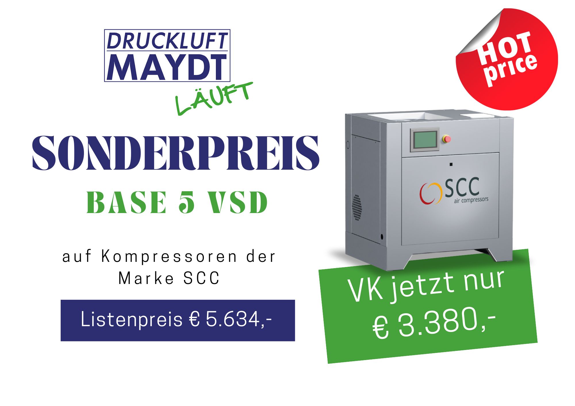 Der SCC BASE 5 VSD überzeugt mit starker Leistung, hoher Energieeffizienz und einem kompakten, robusten Design – ideal für jeden, der Wert auf zuverlässige Druckluftversorgung bei geringem Platzbedarf legt.